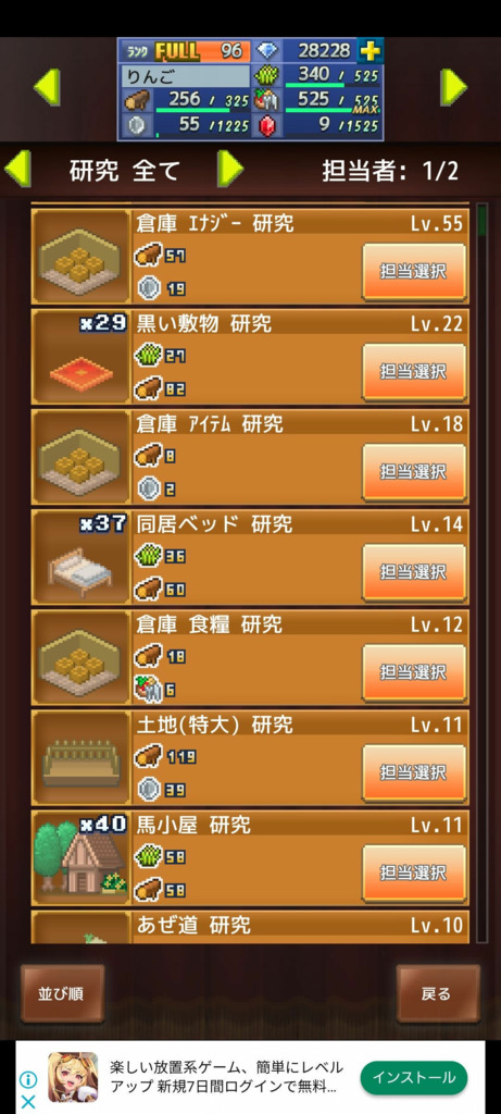2つ目の街を作ってますます木材不足が深刻になり、造林所を増やそうとしてきたのですが、研究リストに出なくなりました(「再度研究できるまで×分」状態ではありません)。