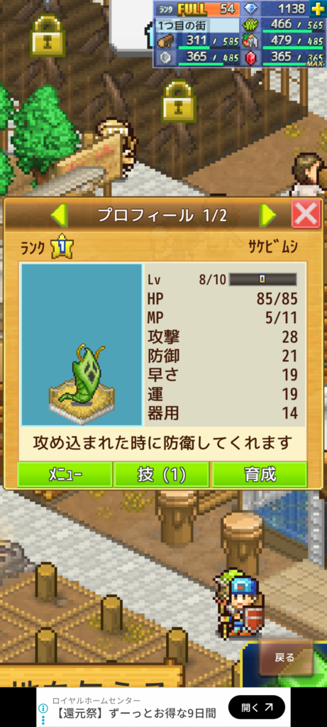 ・エリアをどんどん開放できるところまではストレスなく楽しめましたが、レベルが上がり、2世を生み出さないといけないあたりからすごく時間がかかり、作業も単調になり、さすがに終わりにしたい気持ちになりました。だんだんとキャラのレベルも上がりにくくなり、町のレベル上げも何日もかかるので、楽しいというよりも、本当に延々と作業をしている感覚になってしまいました。