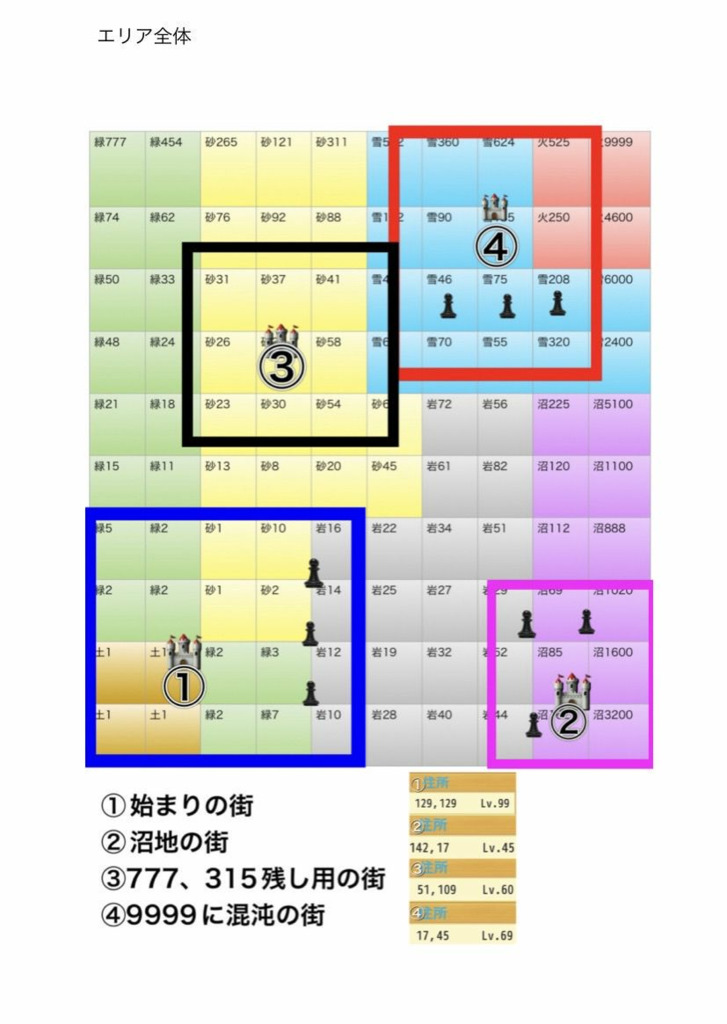 ゴマ@ 2022/02/25 ④9999のレベル上げ専用の街 一つ手前のエリアから派遣費用が20以下になる場所。 雪は、ギリギリ320か、2400で狩る。 火山(溶岩)地帯がほぼない&混沌の岩が更地多めなので、火山系の討伐がすこぶる遅いw