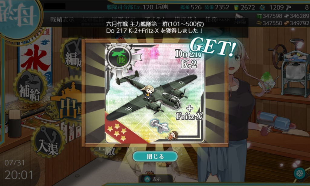8月いっぱいかな。金曜夕~土曜に常設EOをやっつけたら、イベント出撃かな。(スロースターター)