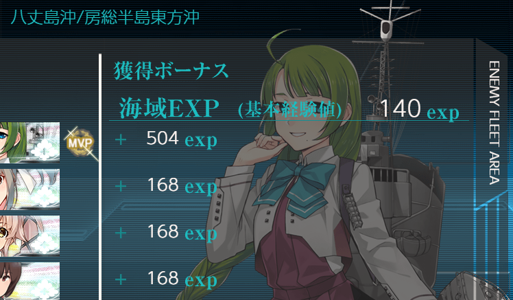すごくどうでもいいことに気づいたんだけど遊撃部隊の戦闘終了後のリザルト画面で「海域EXP (基本経験値)」がフレッチャーと夕雲の目線と被ってえっち