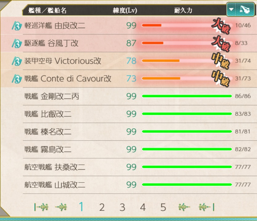 E4丙で戦力1ギミックをやってたんだが、F1が潜水と空襲の混合ってだけでもひどいのに、F2のラ級たった1隻で、開幕雷撃・昼間砲撃×2・夜戦と、毎回食らってこんなひどい事になった。今回のイベント、マジでラ級はクソだな。