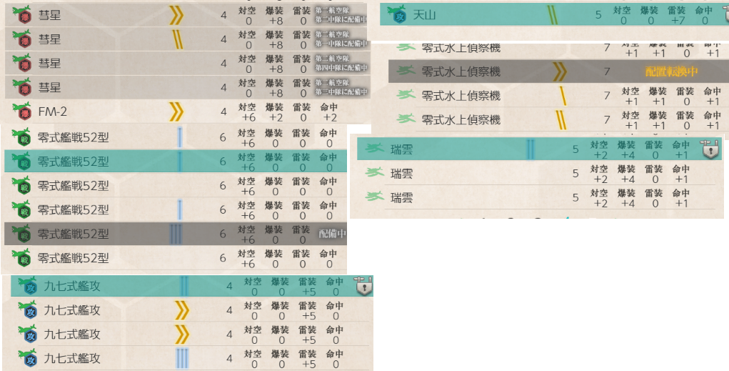 3-5、補給、軽巡2、水母3。準下の開幕マシマシもある。