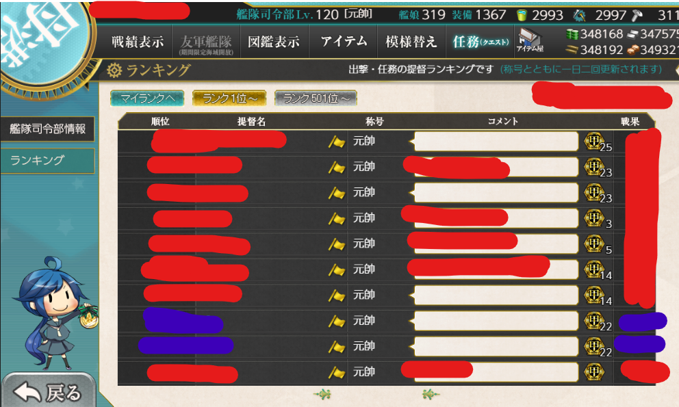 つい戦果ビューワーで各鯖の400位台前後を片っ端から見てる(笑)