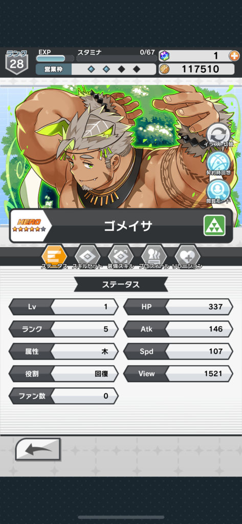 ヒーラーは不遇なのがLWゲームの掟。ただゴメイサより素早いView2000以上のキャラを採用することでポラリスやナリヒトに並ぶスターターの役割は一応持てると思う。完全に自前スキルでやることなくなってもこのゲーム誰でも使えるサイドキックスキルがやたら優秀揃いだからどうとでもなるしね
