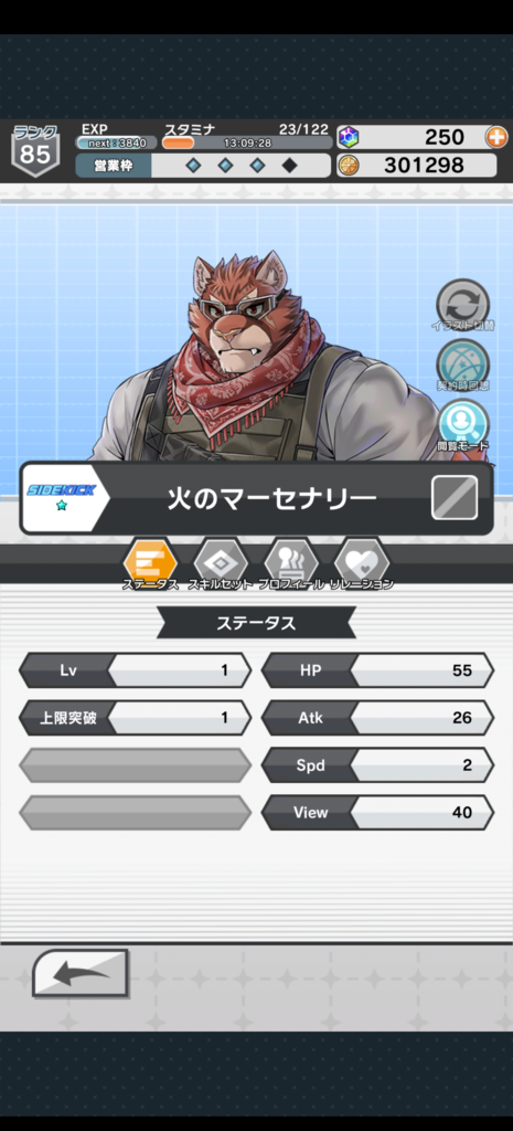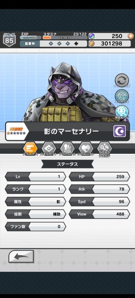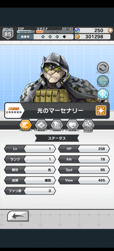 ★3(画像は★4に上げた後のものですが)で3つ目のスキルが増えました(★4ランクアップ時はスキルに変化無し)