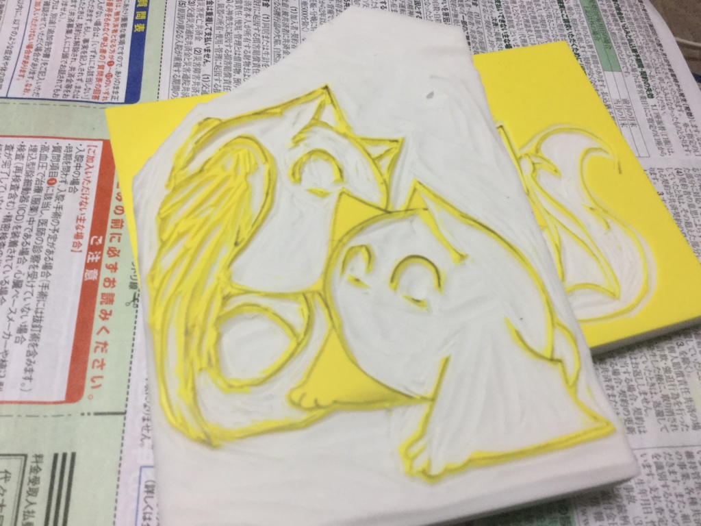 ちょっと簡単に絵書いて消しゴムに移したけど明日テストなの忘れてたんですよね…