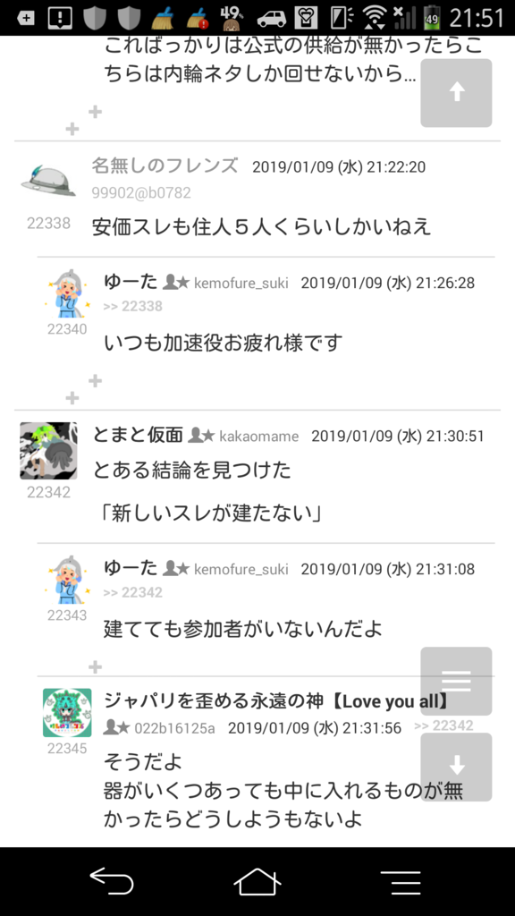 オリフレスレの住人は前に比べると減ってしまいましたし、住人も低浮上の方が多いですからね…
