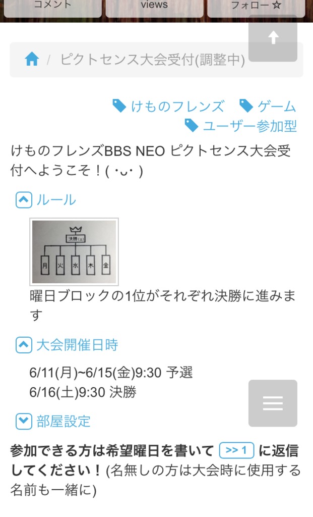 追記:シンプルに「けもフレBBS NEO ピクトセンス大会」方がわかりやすくていい気がしてきた…宣伝にもなるし