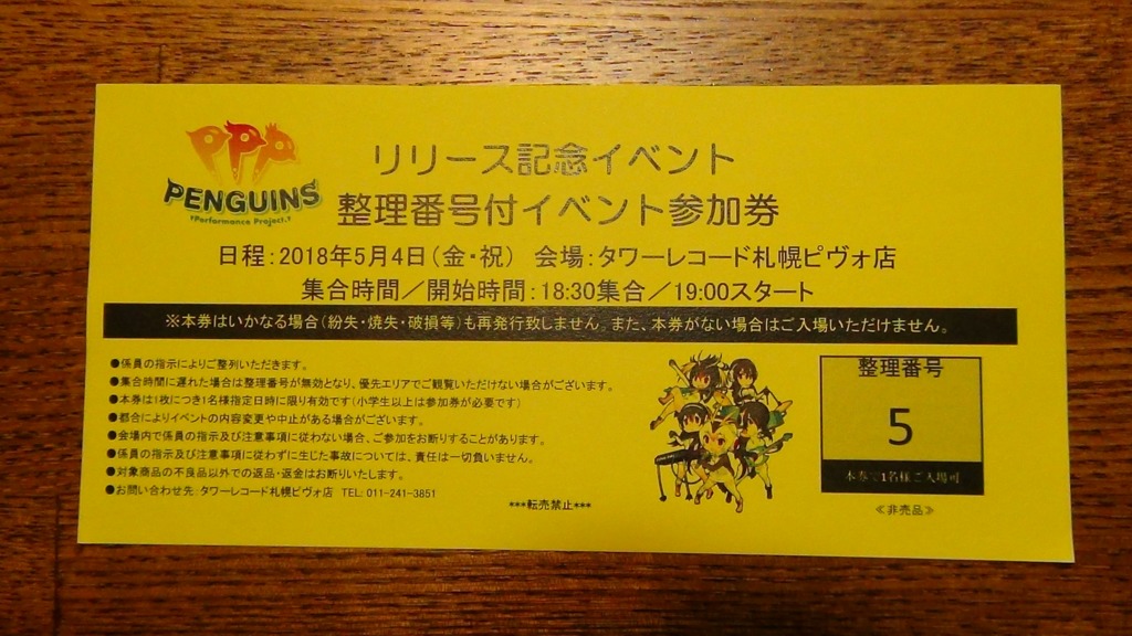 ちなみに整理券はタワーレコード札幌ピヴォ店で発売日に買ったらついてきました