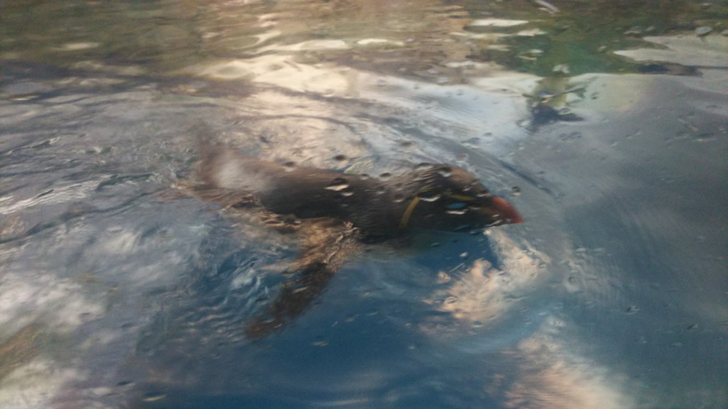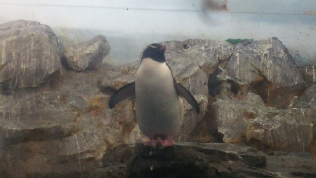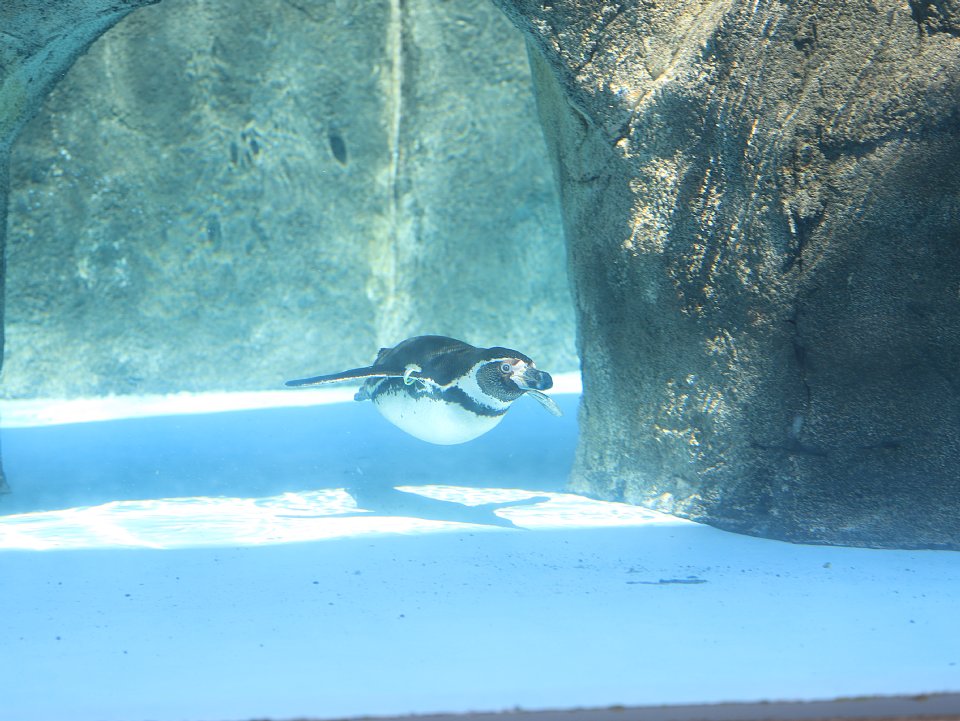 マゼランペンギンのプールです。このペンギンプールだけで約350トンの水量があり、屋内のプール型の水槽としては国内最大級とのこと。