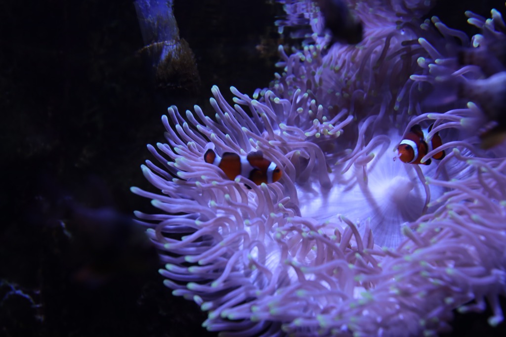 小さな岩っぽい水槽。イソギンチャクとカクレクマノミがいました。