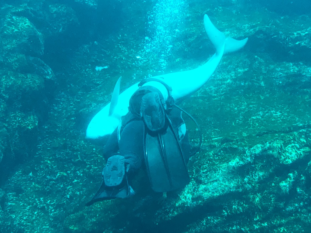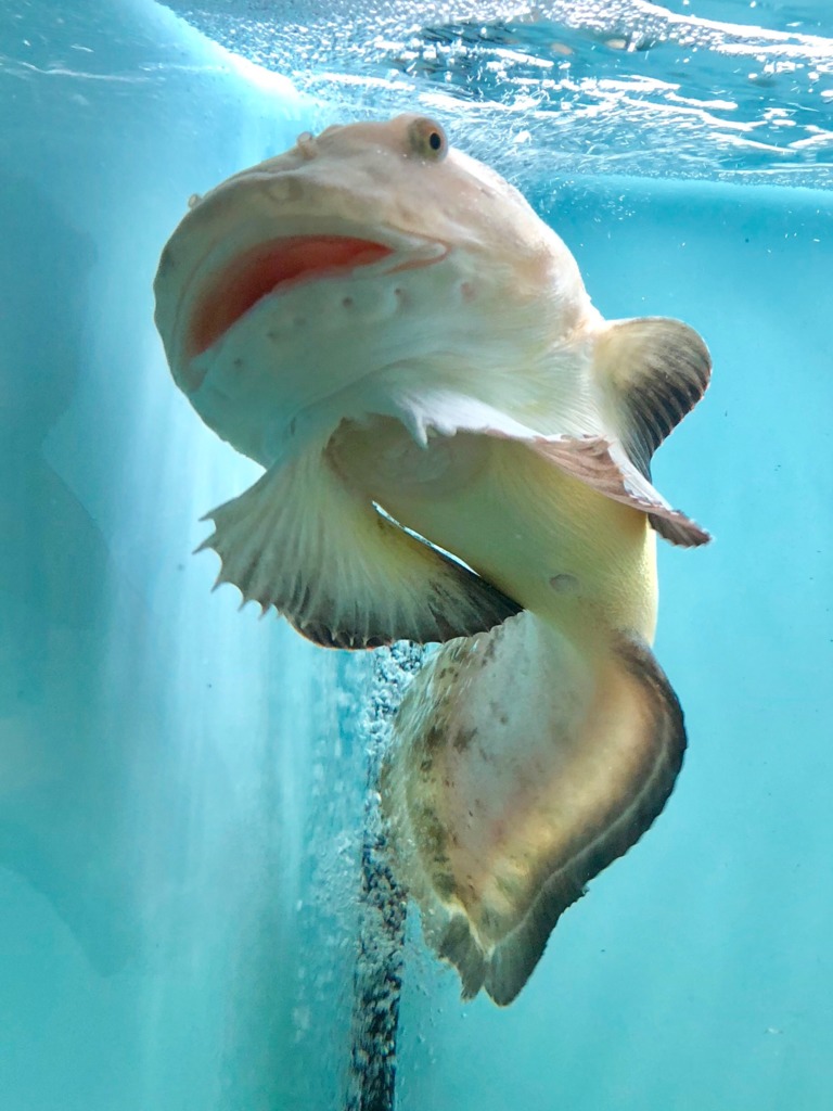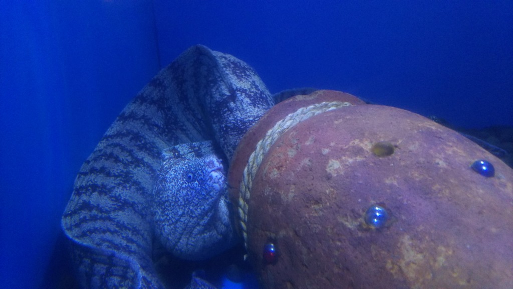 ラブカちゃんのお顔。ヒレが小さくて大きなウミヘビみたいです。