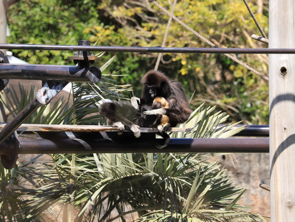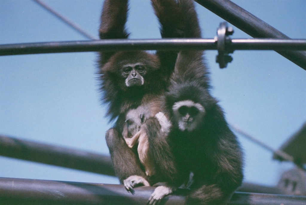 テナガザル。フィルムの右端の写真と同じです。白いのは赤ちゃんを抱いているようです。