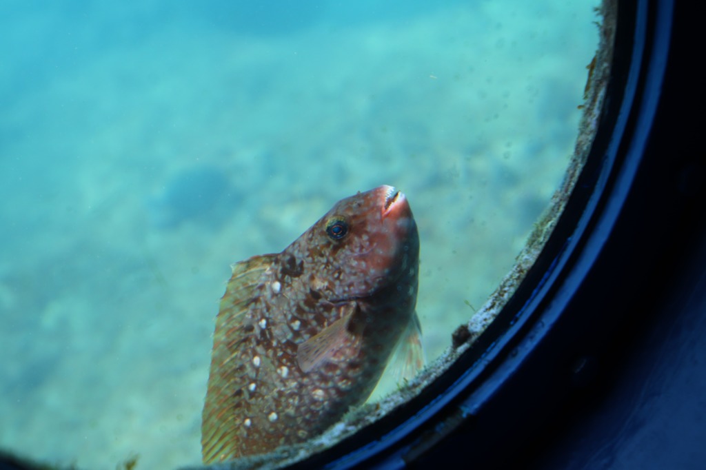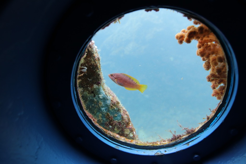 水中の展望室から丸窓覗いて海の中を観れるのですが写真を撮るのは難しかった💦