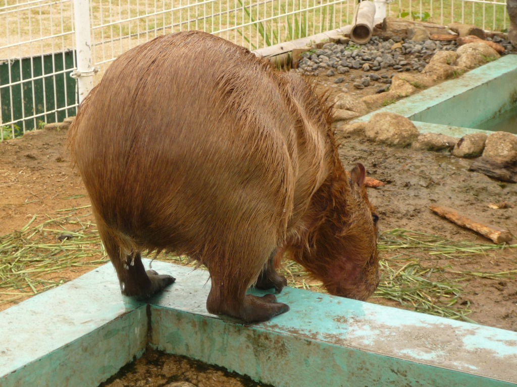 ビントロング。のいちではスコールタイムというシャワーの時間があります。何やらうっとりしている様子。ちなみにカピバラゾーンにも雨が降りますが、カピバラは対照的で急いで雨宿りに行きます。