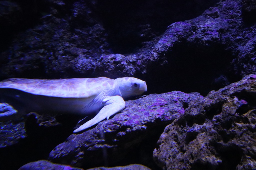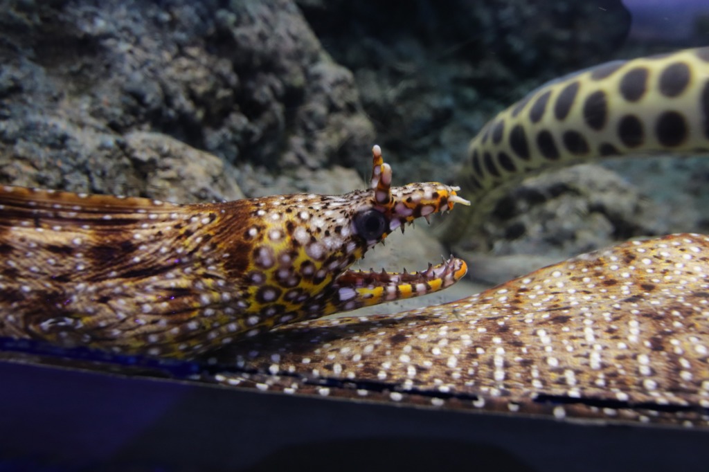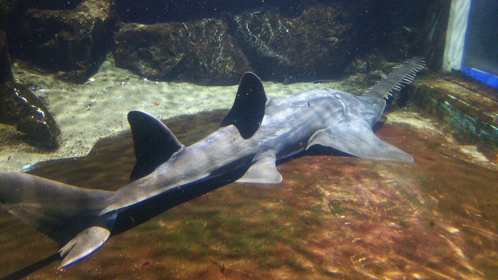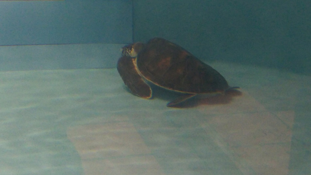 「シーラカンスミュージアム」のジオラマに二体、冷凍個体が二体、そしてこの一体ということで、ぜんぶで五体のシーラカンスがこの水族館にいるようです。一匹くらい食べても……。