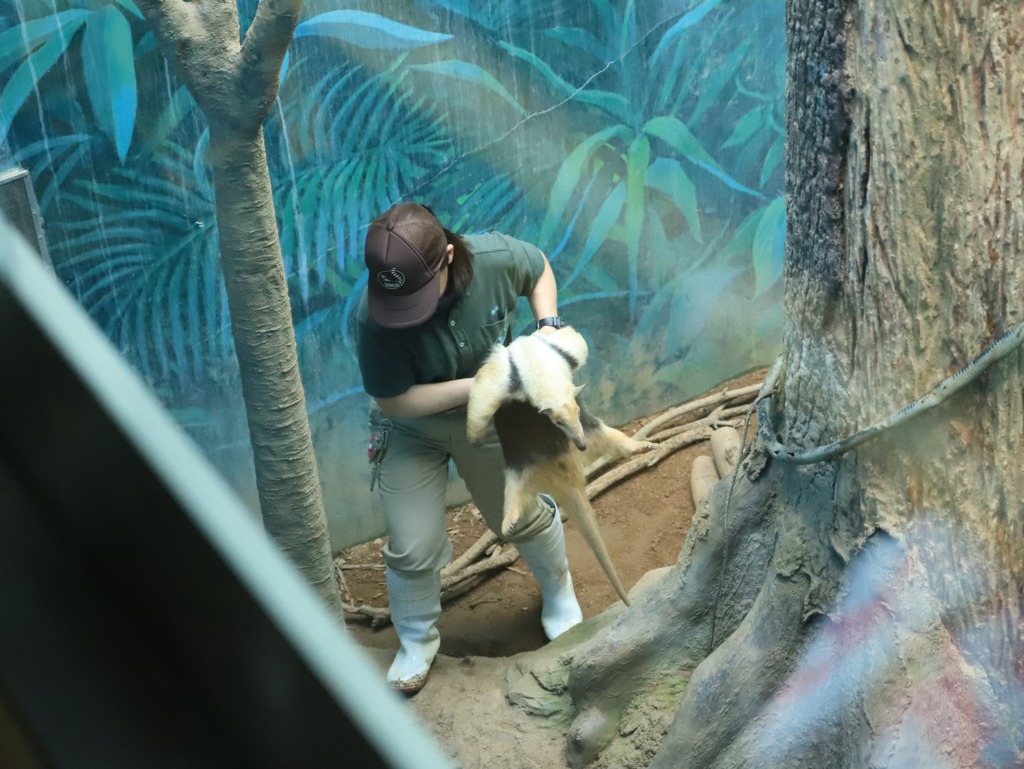 猫を抱っこすると縦に伸びますが、アリクイは横に広がるようです。ちなみにのいちのコアリクイは3頭いて、それぞれコア、リン、クイという名前です。