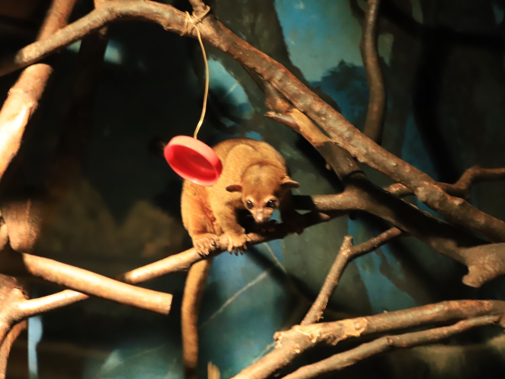キンカジュー。アライさんの親戚らしい。展示場の照明が落とされているので、isoを12000まで上げて力技にでる。しかし流し撮り失敗。