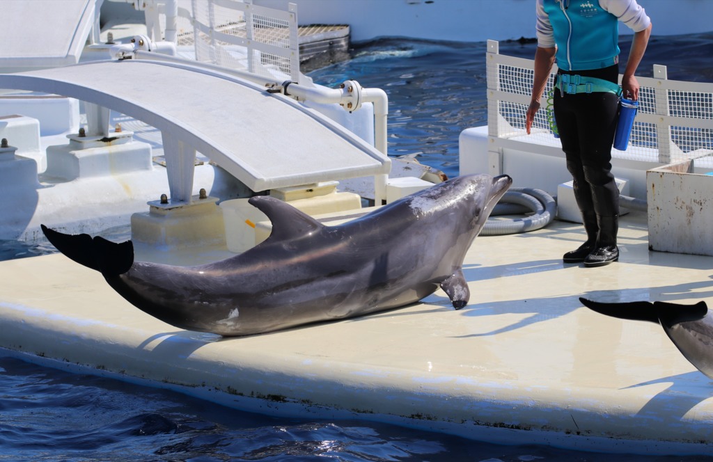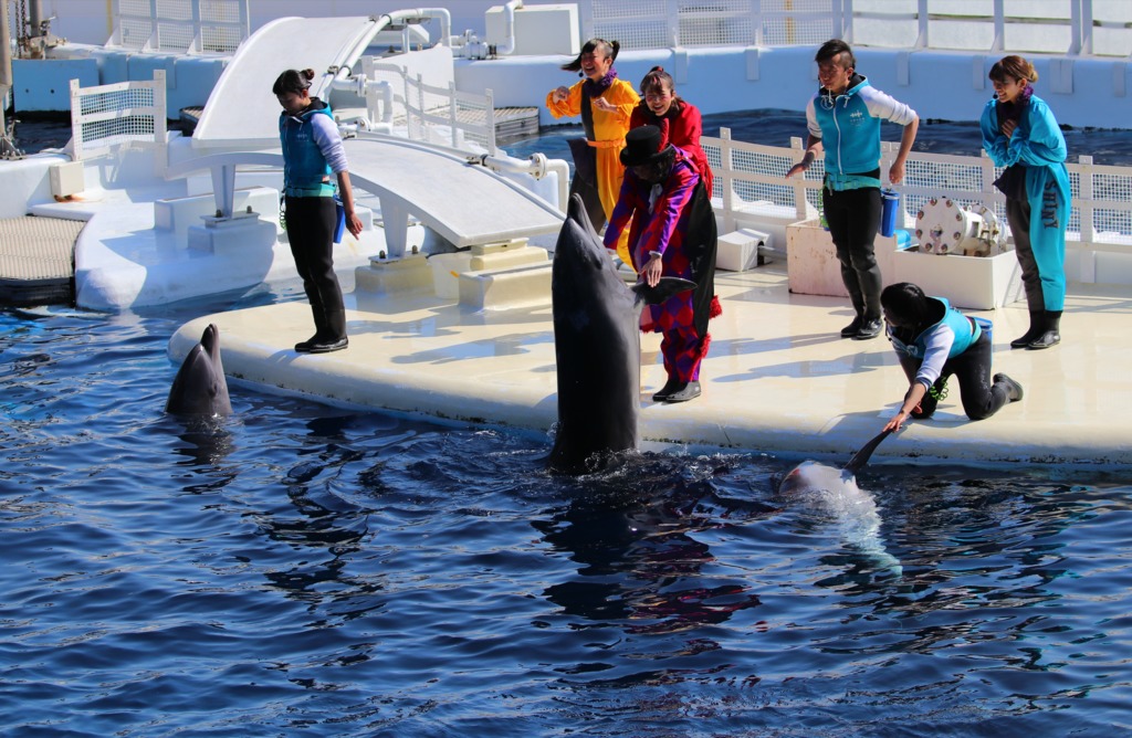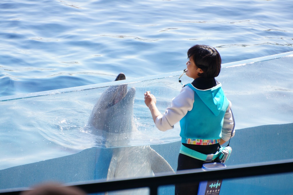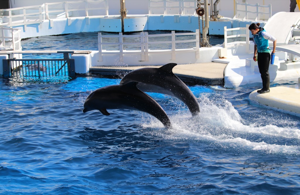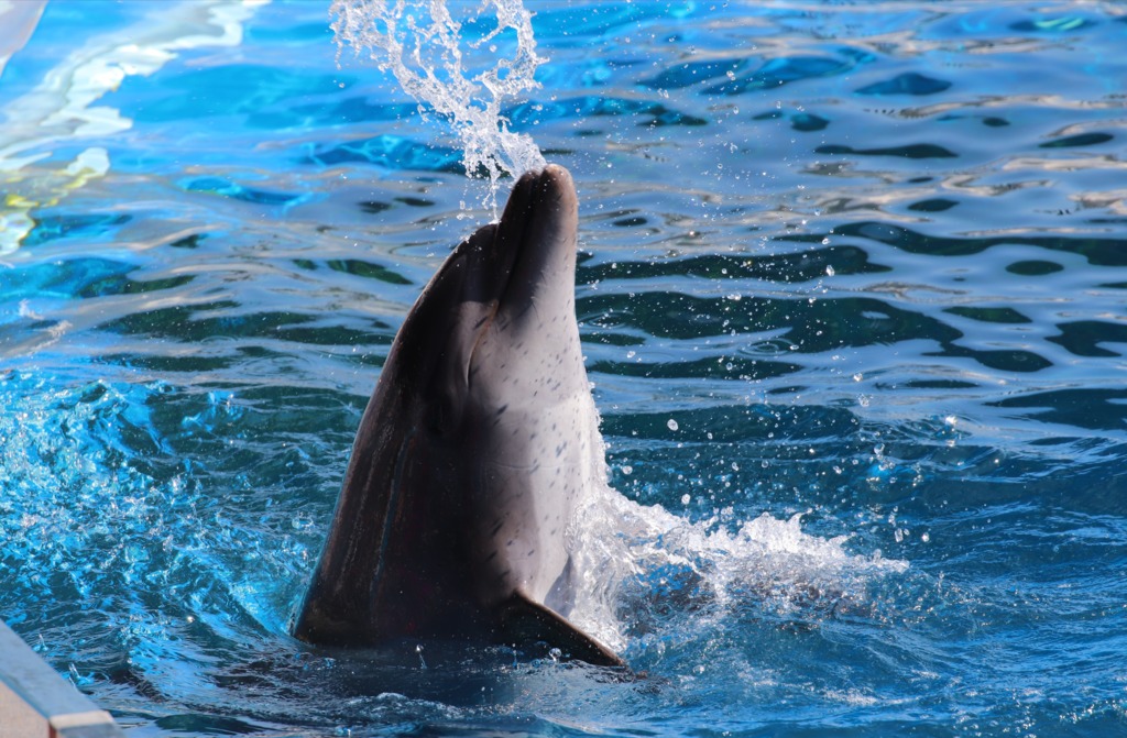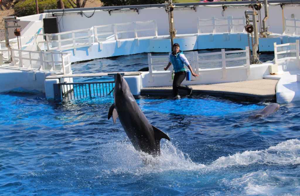 イルカショー、ジャンプの場所が読めずに上がってく写真がほぼ撮れなかった