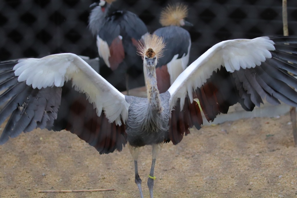 ホオジロカンムリヅルの羽根を広げた姿がとても雄大です!