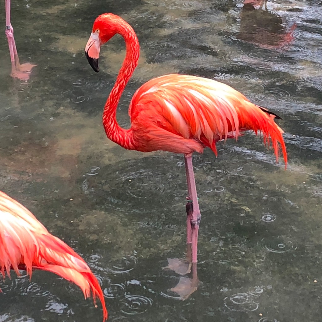 あいにくの雨だったみたいですけど波紋にたたずむフラミンゴが雨ならではの雰囲気があっていいですね!