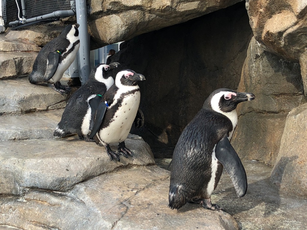 繁殖のシーズンのためかペンギン舎に用意された疑似的な巣穴はだいたいペンギンで埋まっています