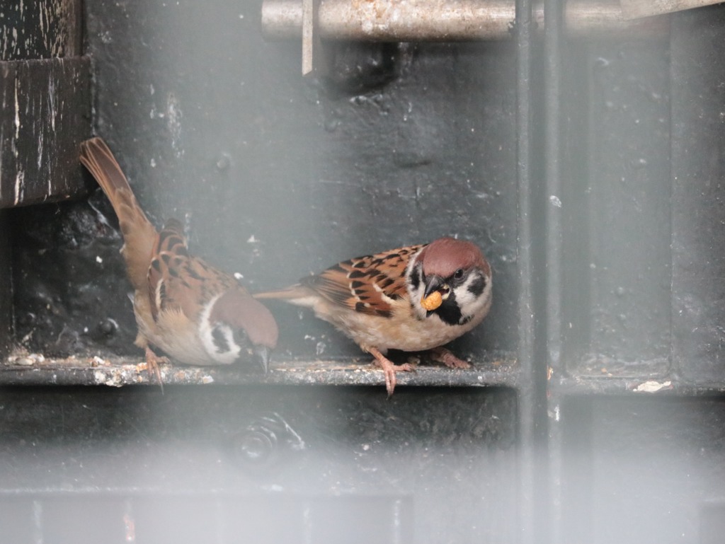 スズメ。隙間から入って餌をさらっていくちょっと小憎いやつ。展示物ではありません。