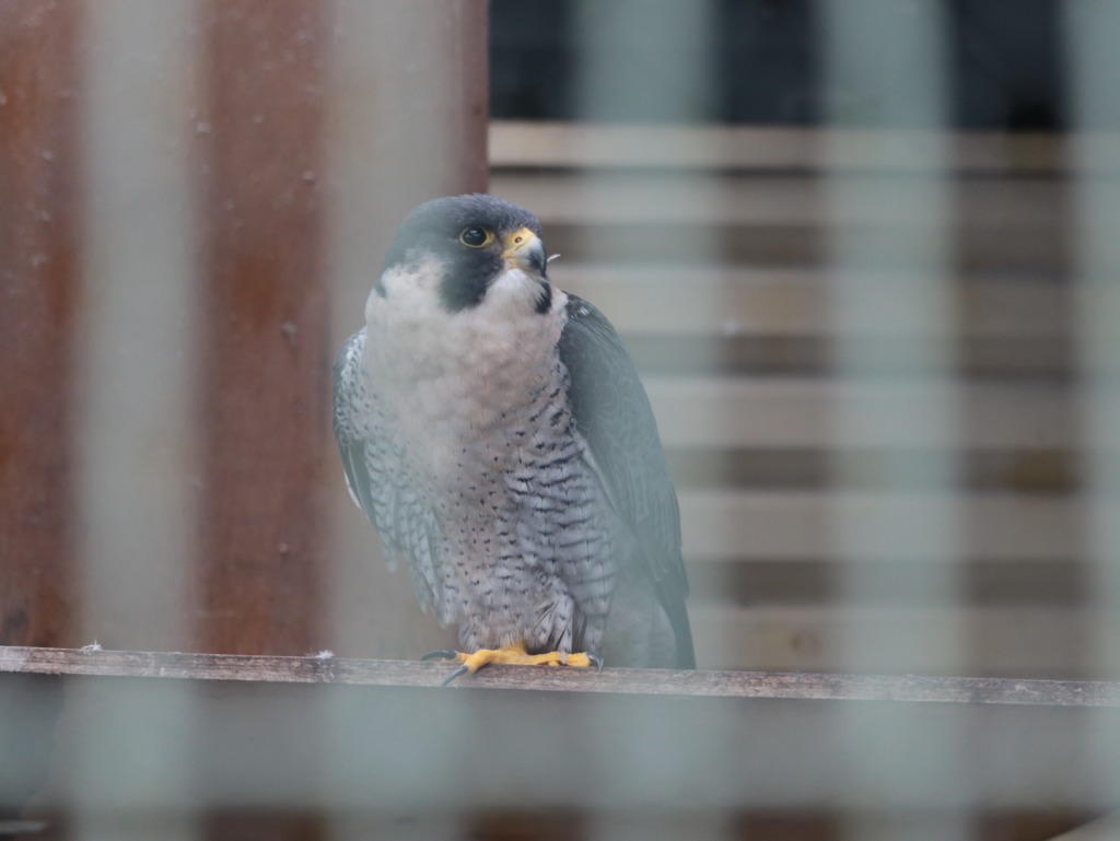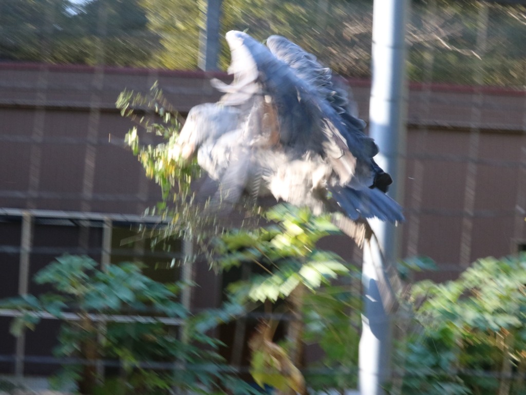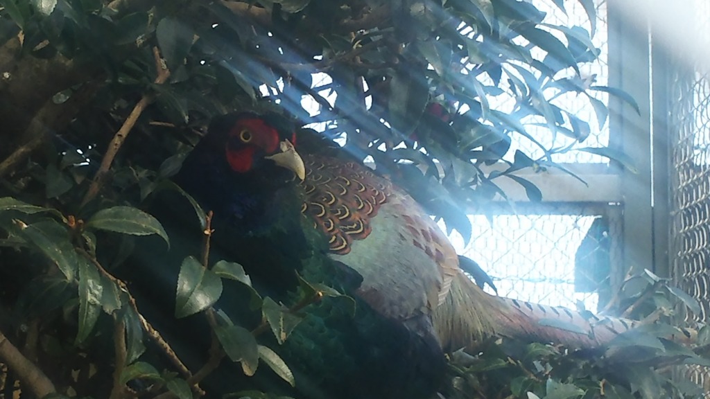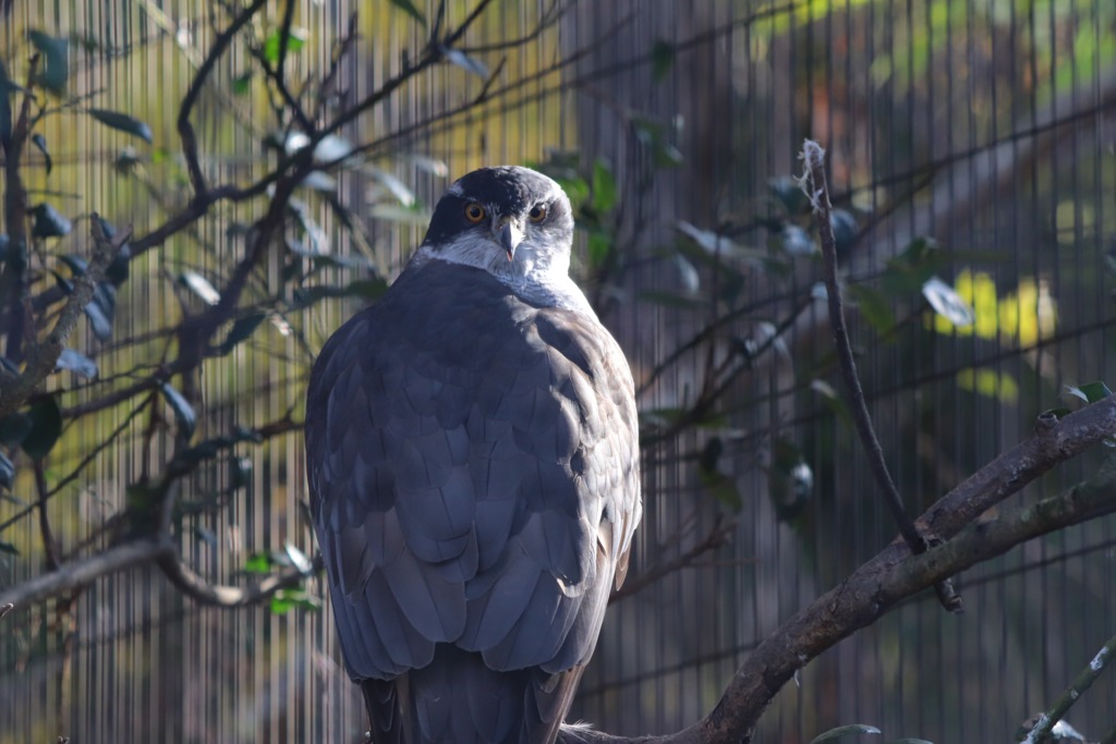 ハヤブサ。意外と可愛い顔。孔雀は羽の生え変わり中ですかね。