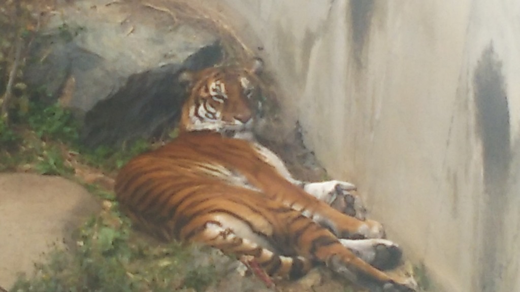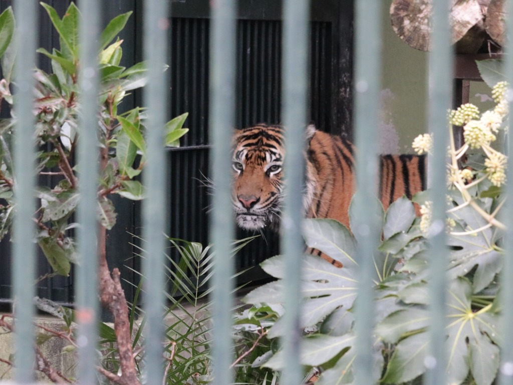 スマトラトラ。生息地を反映してか、檻の中に緑が多いですね。