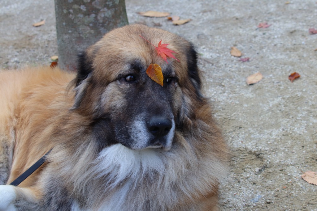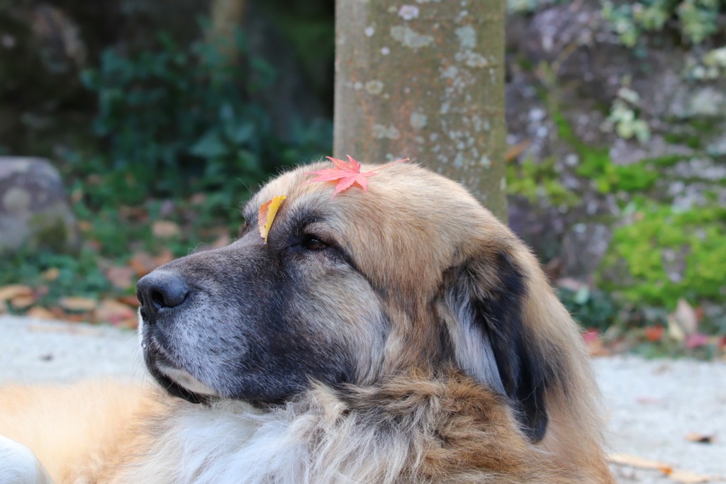 ワンコは紅葉が綺麗だったので頭に乗せて遊んでたりしたのですが
