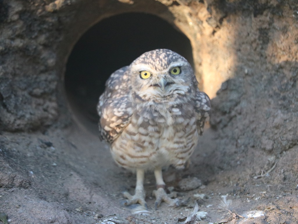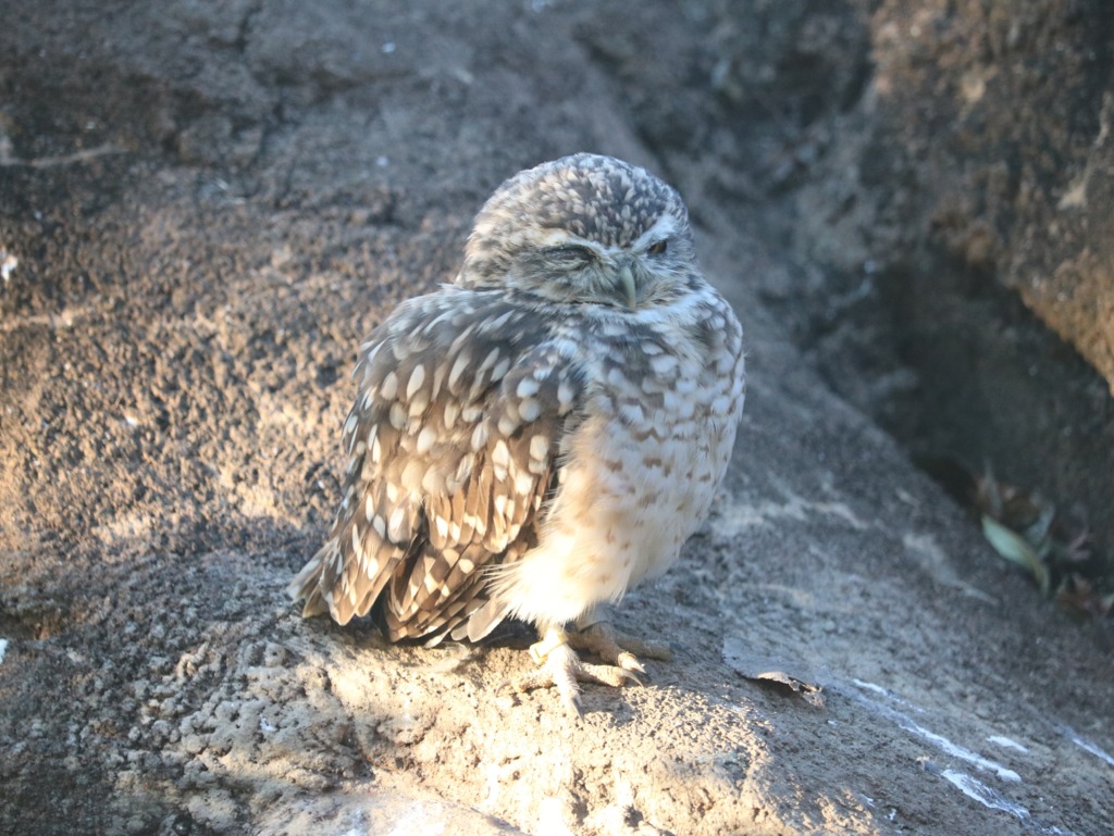 アナホリフクロウ。片目を開けてこちらを伺っています。