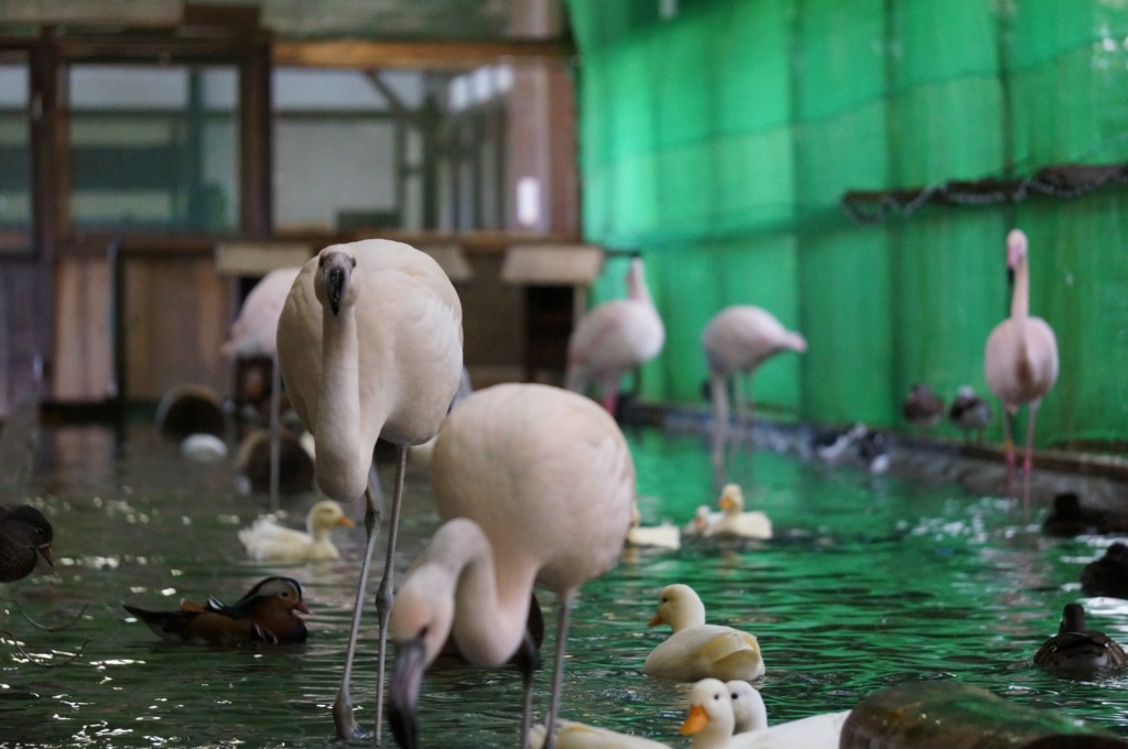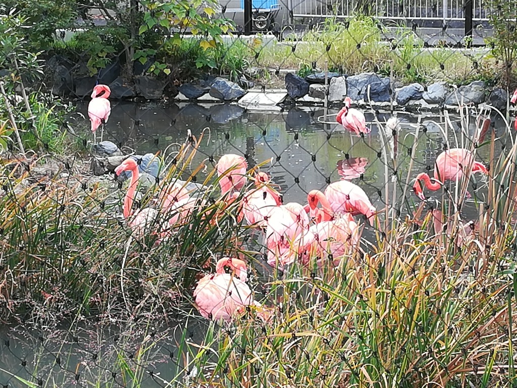 餌やりが無料でご自由にどうぞ方式だったので餌やりしてきましたが、曲がった嘴で器用に手のひらの餌をつまんで水に落としてふやかしてから食べるんですよ すごいですね~
