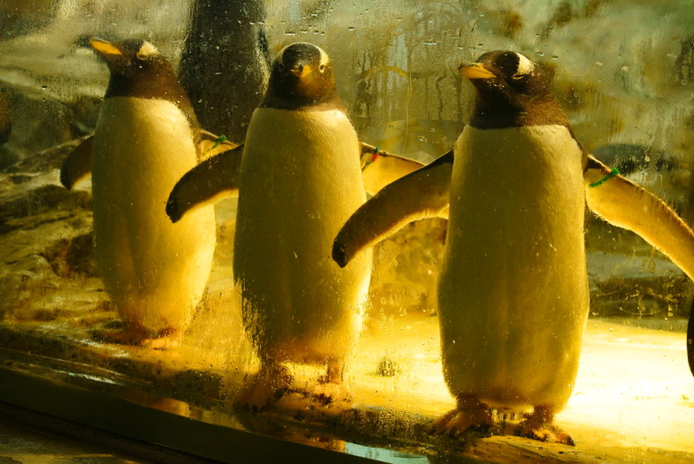 アデリーペンギンとヒゲペンギンはコウテイやジェンツーがいる水槽と同じ場所にいますよ