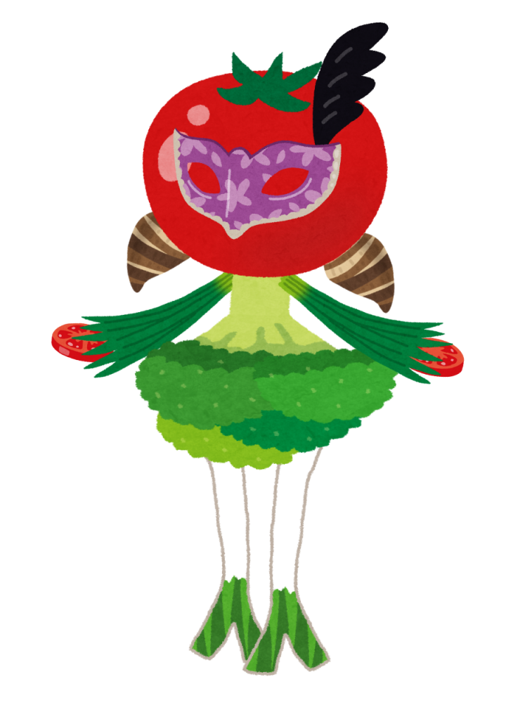 海老芋というらしいです。仮面以外は野菜で出来てます。