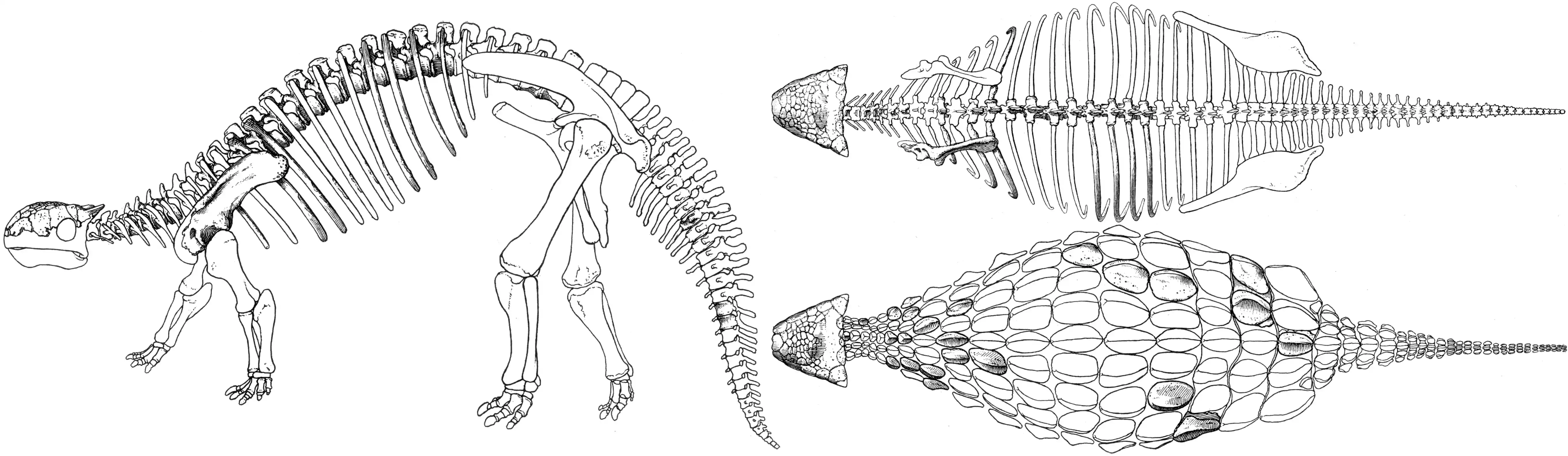 同様に体を装甲化しているものにノドサウルスがいる。しかしノドサウルス類の装甲が中まで密な重装甲となっているのに対し、アンキロサウルス類のそれは内部が空洞でより軽く、運動性に優れている。防御を最小限とし、むしろ尾の先のハンマーを使うことで能動的に身を守っていたと考えられている。同じアンキロサウルス科で研究が進んでいるのはエウオプロケファルスである。このようにまだ全身骨格の少ないアンキロサウルスの推測の大部分は別の種で行われる場合もある。