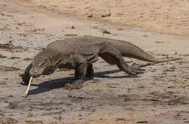 木ぃにも登るし、水にも入って泳げるし、時速20kmでも走れるのがコモドドラゴンです