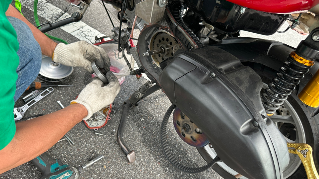 トリシティエンジンの 純正オートテンショナー これはヤバい 時限爆弾 廃車コースレベルです(笑)