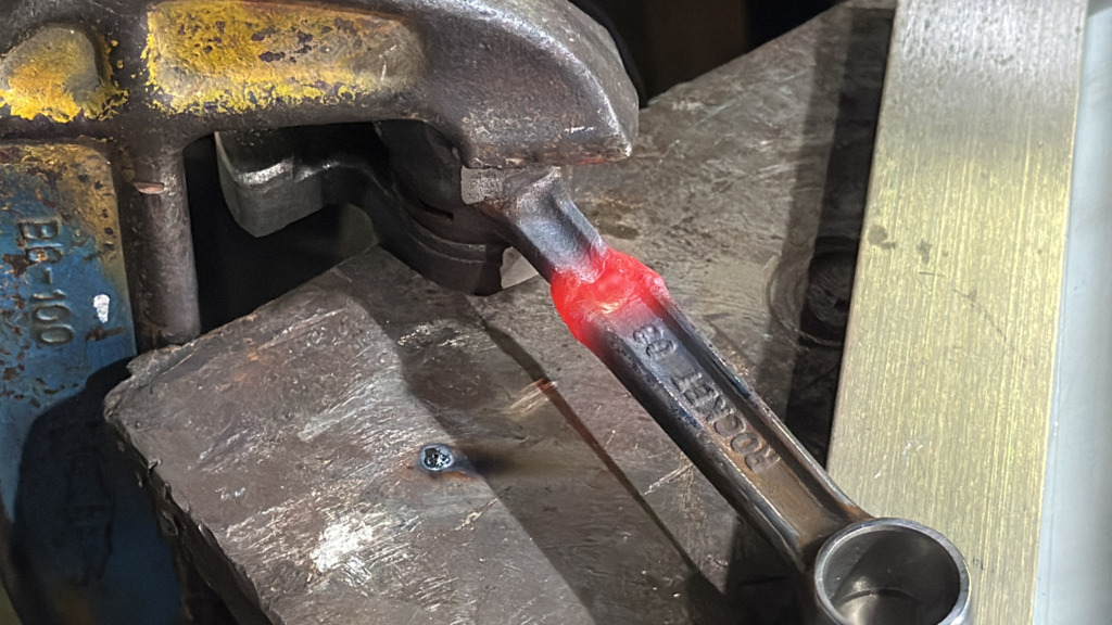 それからコンロッド ケース割って クランクにコンロッド 付いたまま延長成功 これにはチーフメカも納得 仮止めしてからサンダーで開先 しっかり溶接 モレのコンロッドに4VP合体 14ピンへ このアンバランス(笑) ➰ーー 次は