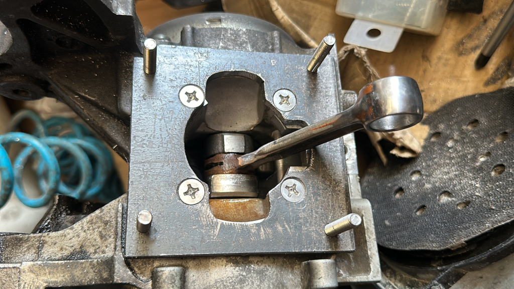 この罫書きで加工です これで上死点でピストンがシリンダーから飛び出さないギリへ 調整したコンロッド仕様で