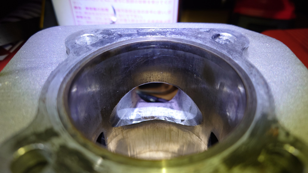 スクミお疲れ様でした 今回の不甲斐ない結果を反省し 排気ポートの改良をしております 左右を更に5mm広げて 上に1mm これで上から23mmです