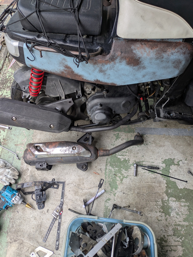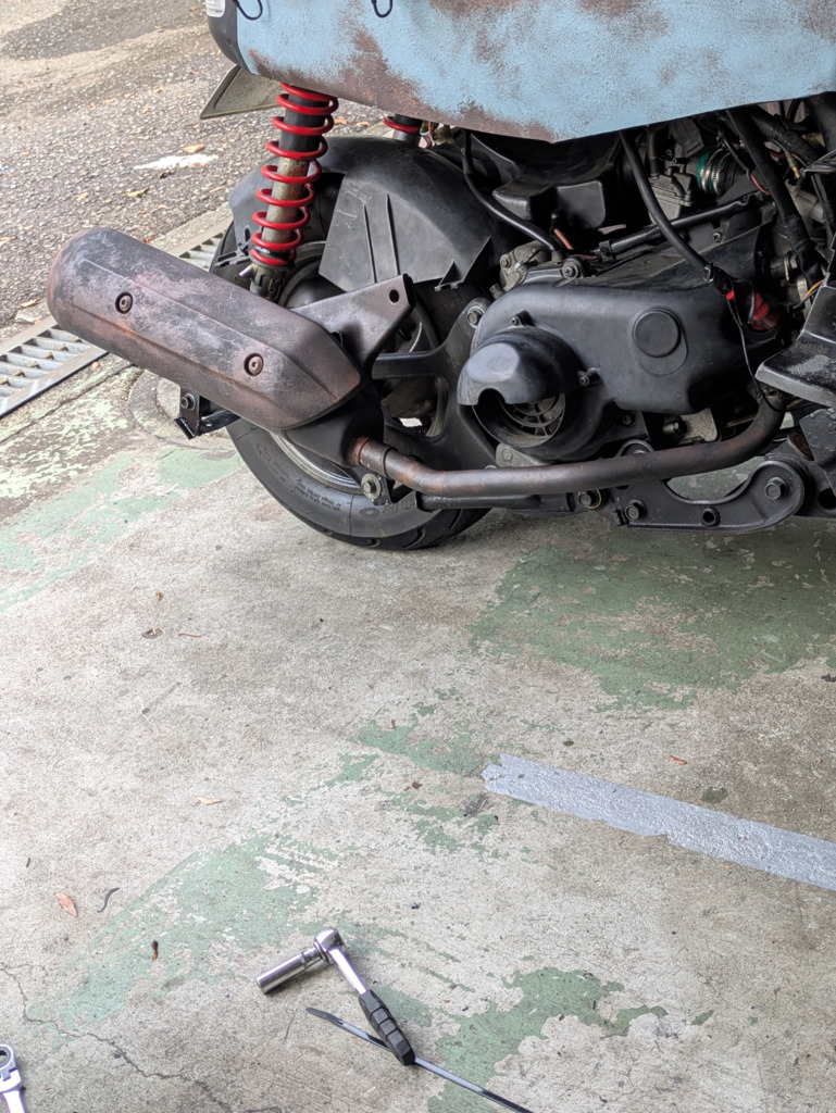 今日は、溶接チャレンジ エキパイの長いxマフラーに交換