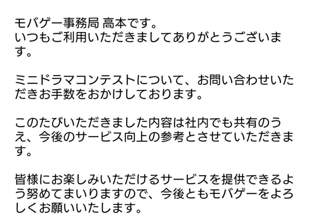 ミニコンの初期挨拶定型文が上位にランクインする事の不満を運営に問い合わせた結果 ダメだこりゃ