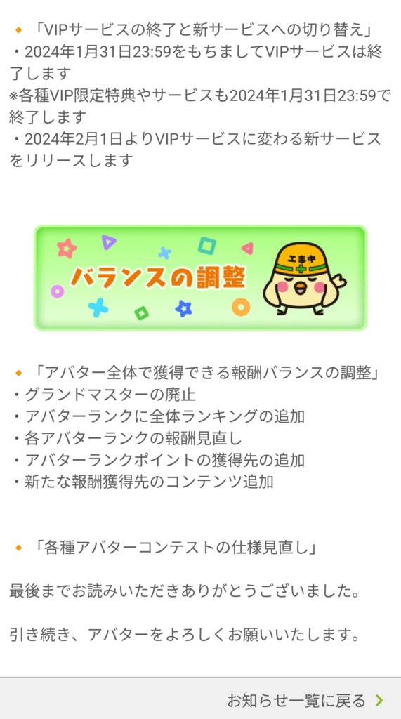 仕様変更諸々でもはやアバに課金する価値さえなくなってしまった