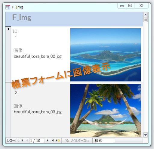 昨日ご教授いただいた、AC2007以降の帳票フォームで画像表示も通常設定でできましたし。