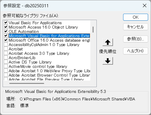 VBA Extensibility を ADE の上におくと、VBIDEのPropertyを参照してしまうということですね。