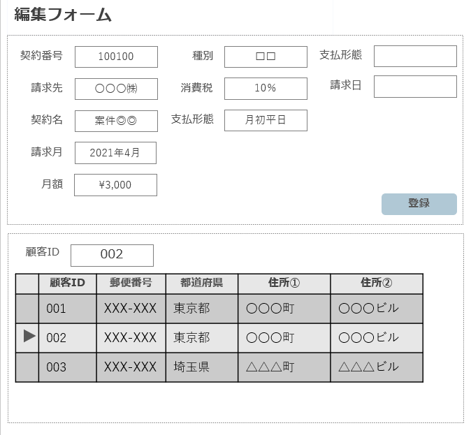 顧客との契約が成立した際に、契約情報を登録するためのフォームの構成を考え中です。
