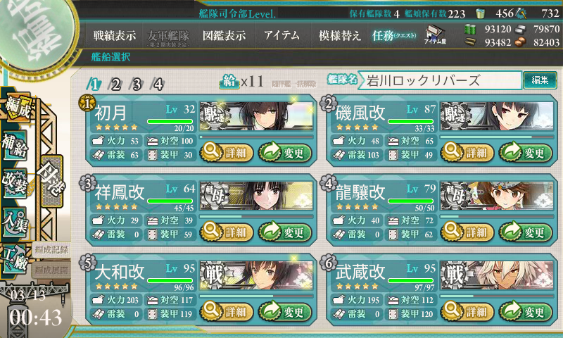 大井:バス停前鎮守府・古都紅蓮艦隊鎮守府との三角トレード。開幕火力としての戦力強化。