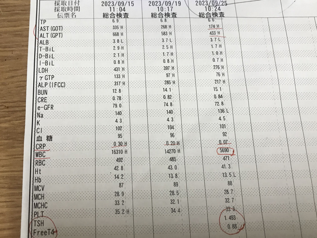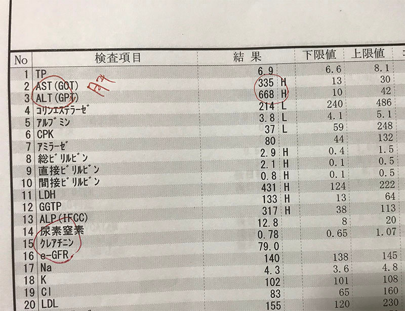 ASTもALTも順調に落ち着いてきてる