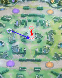赤:レックウザ経由で移動。スティール狙いで待機してるアタッカーを潰したいときに 青:レックウザ直通ルート。スティールしか勝ち目ないとき向け